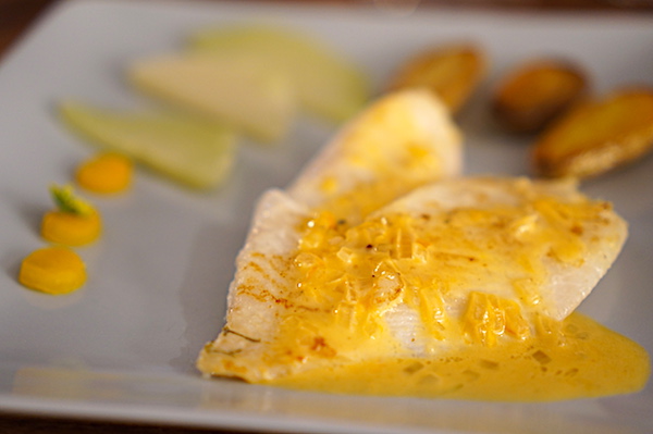 Saupoudrer avec le curcuma et le curry, ajouter le lait de coco et le bouillon, cuire 10 minutes.